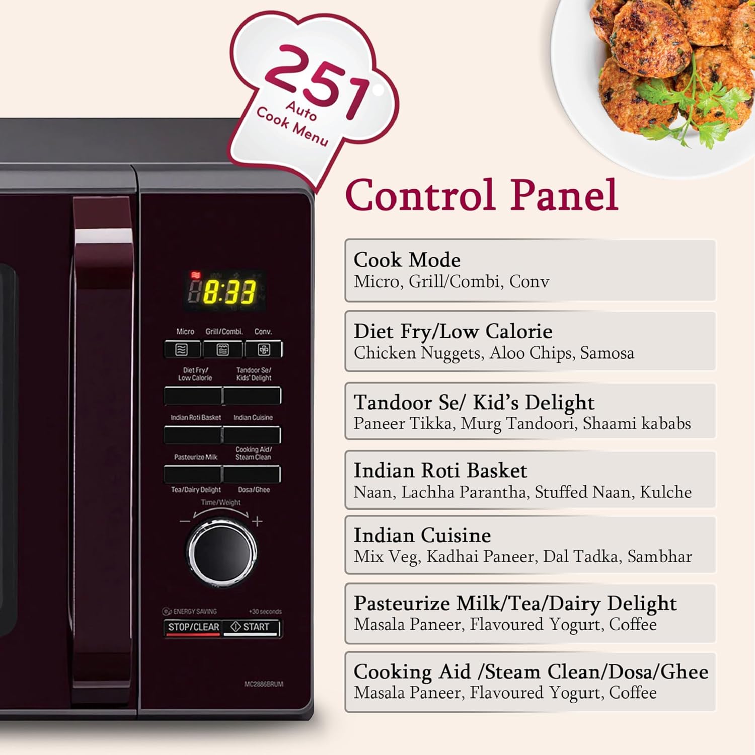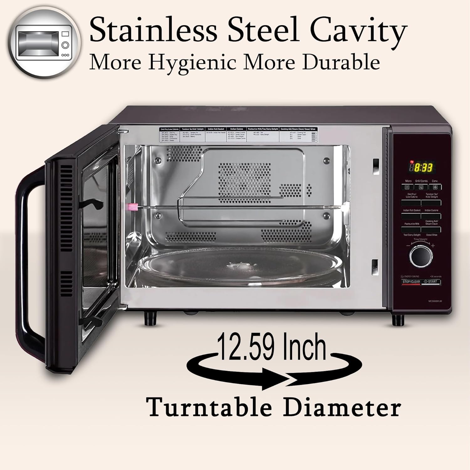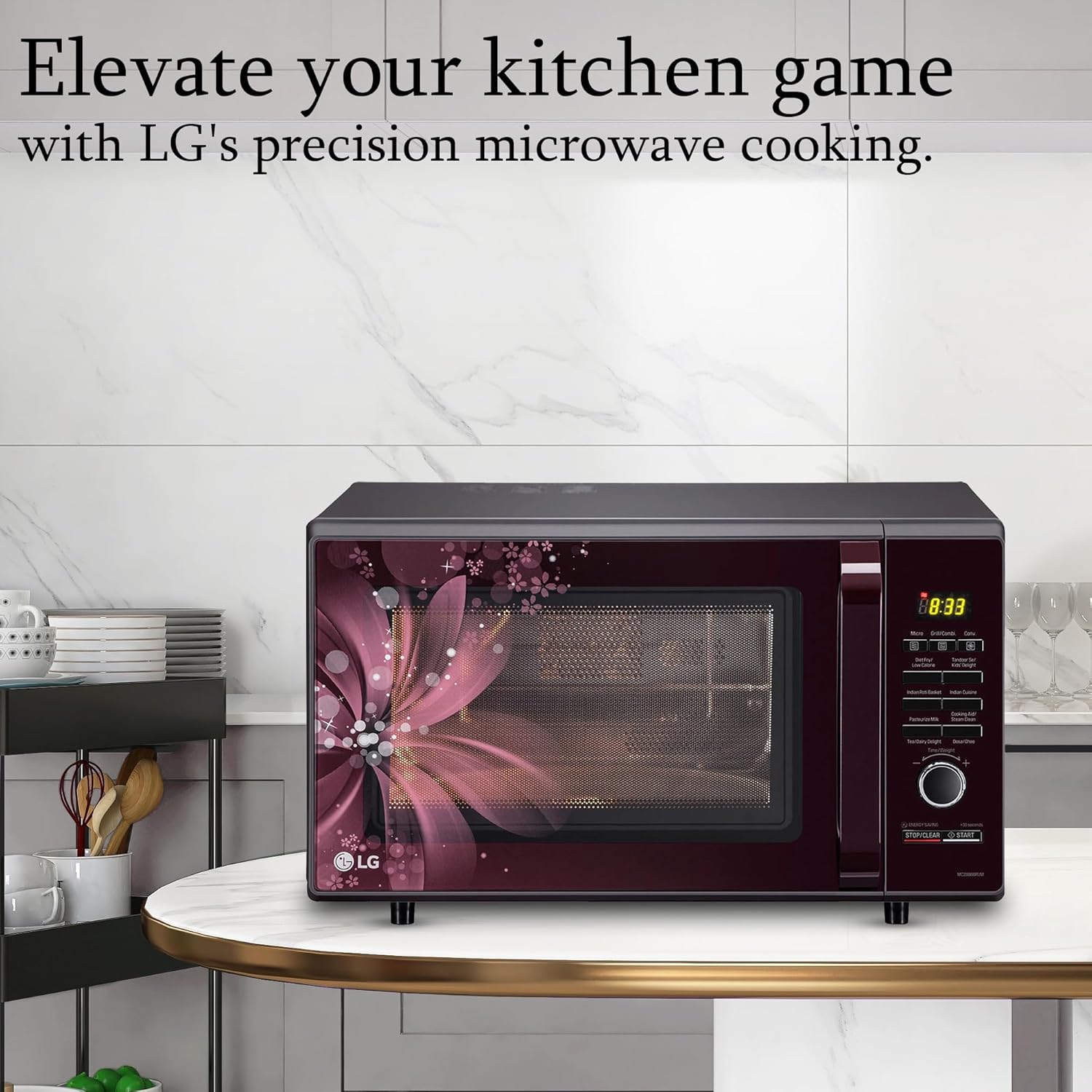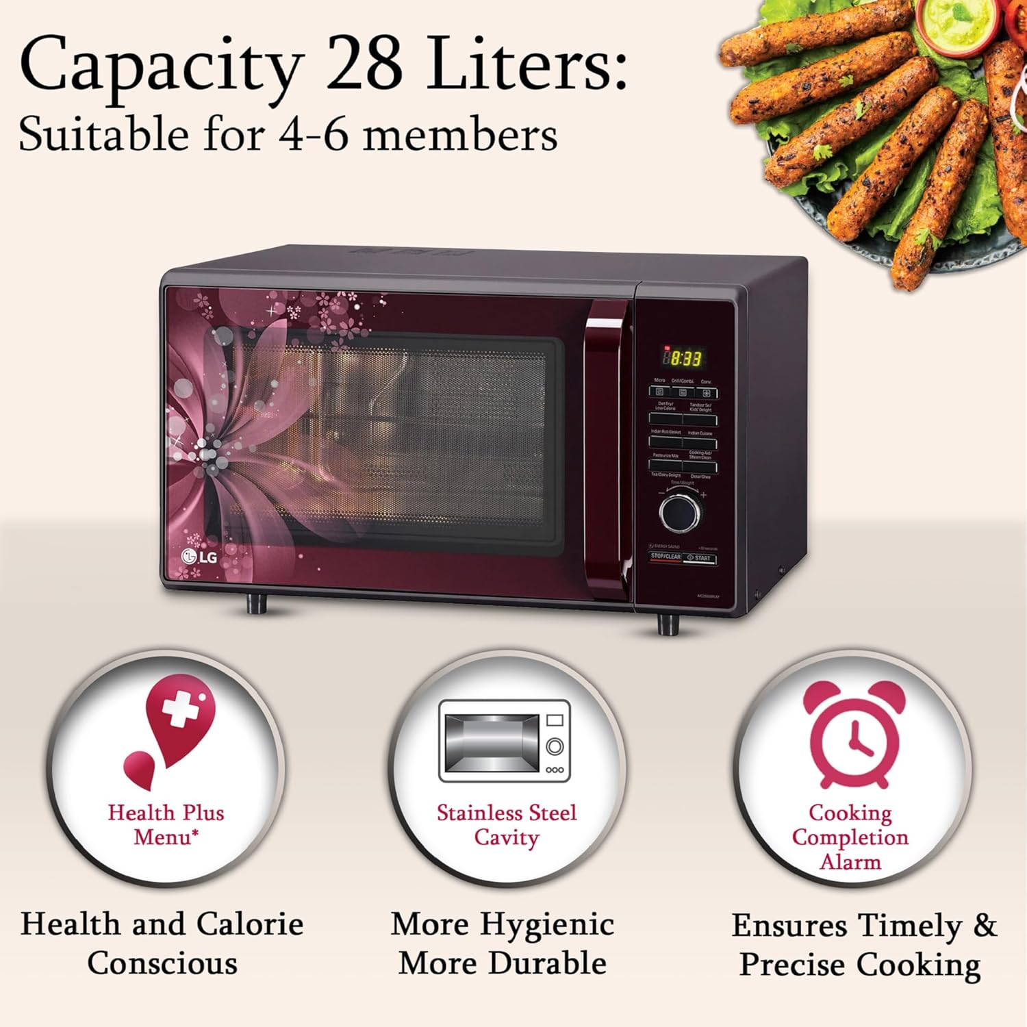 LG 28 L Convection Microwave Oven (MC2886BRUM, Black, 360° Motorised Rotisserie for Bar-be-queing, Diet Fry, Ghee in 12Mins, 251 Auto Cook Menu, Stainless steel cavity & Health Plus Menu)