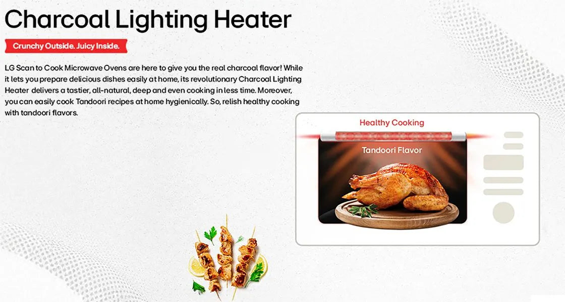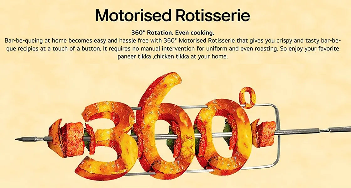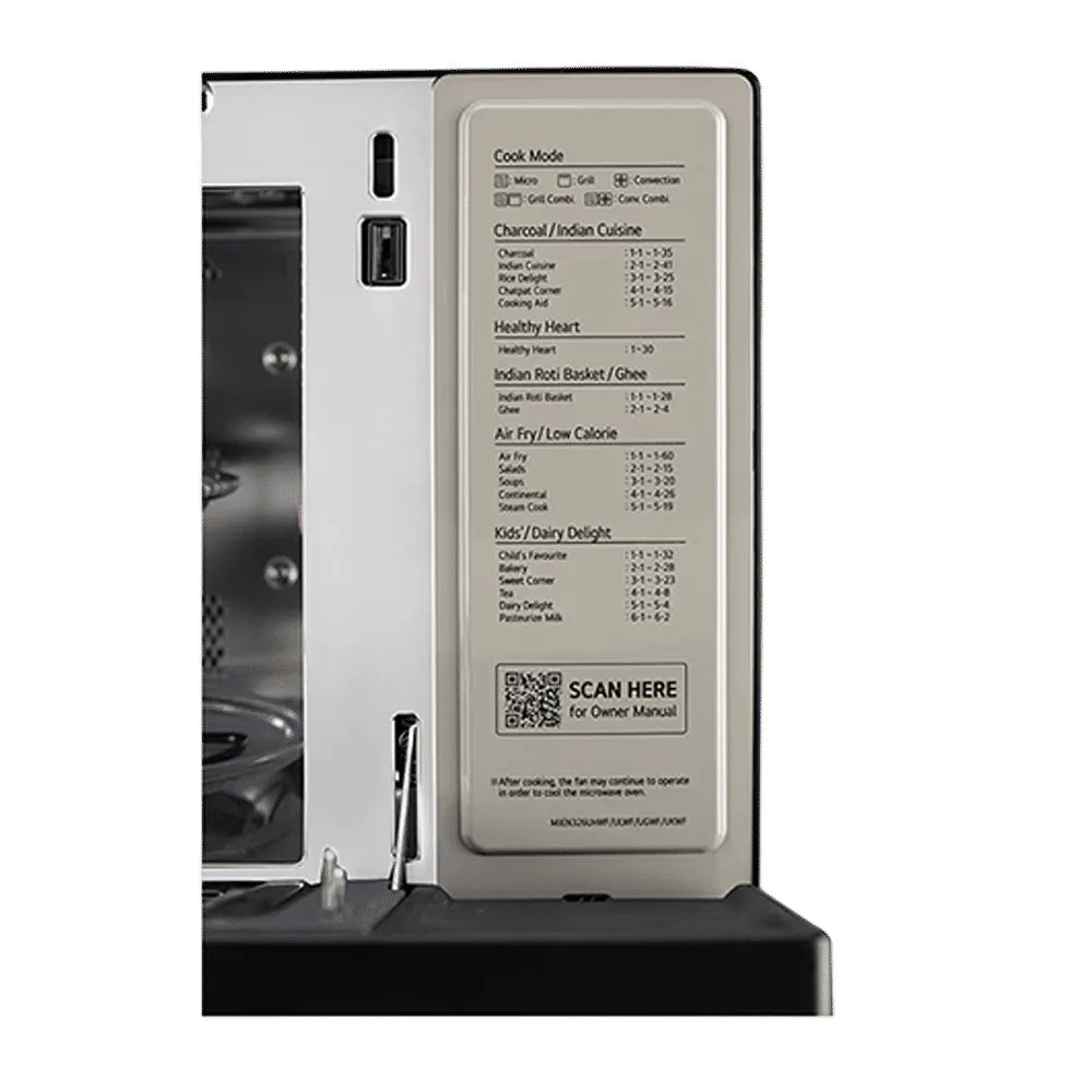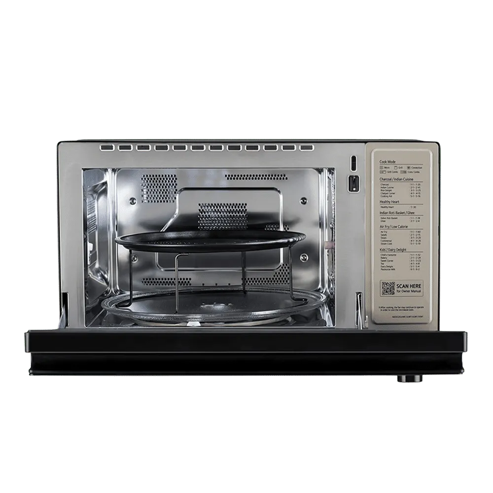 Equipped with Air Fry technology, Steam Chef, and a motorised rotisserie, this microwave goes beyond basic cooking. The charcoal heater ensures food is cooked evenly while retaining moisture and flavor. With an extensive 401 Auto Cook menu and 30 Healthy Heart options, you can prepare delicious and healthier dishes effortlessly.