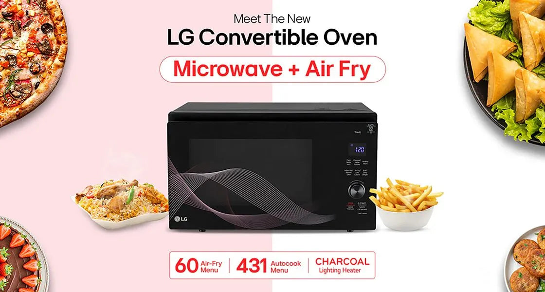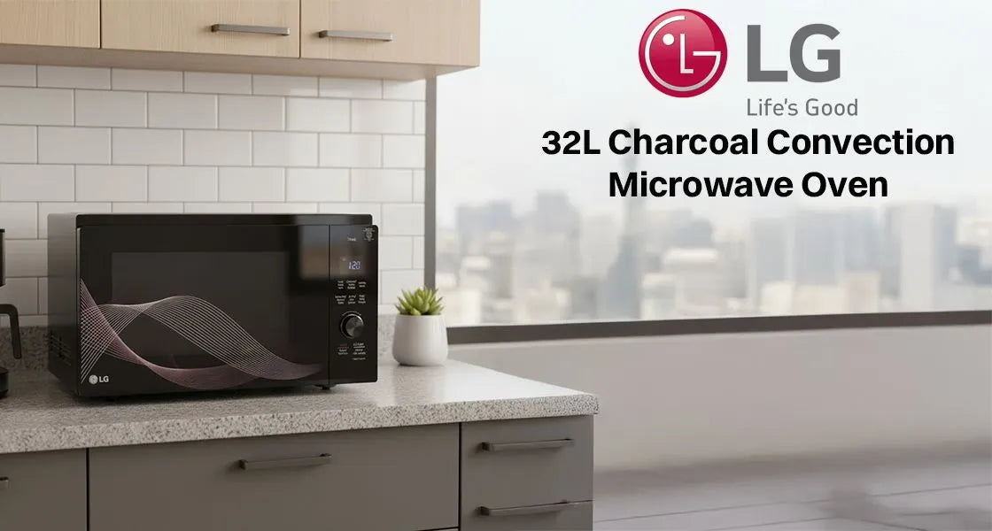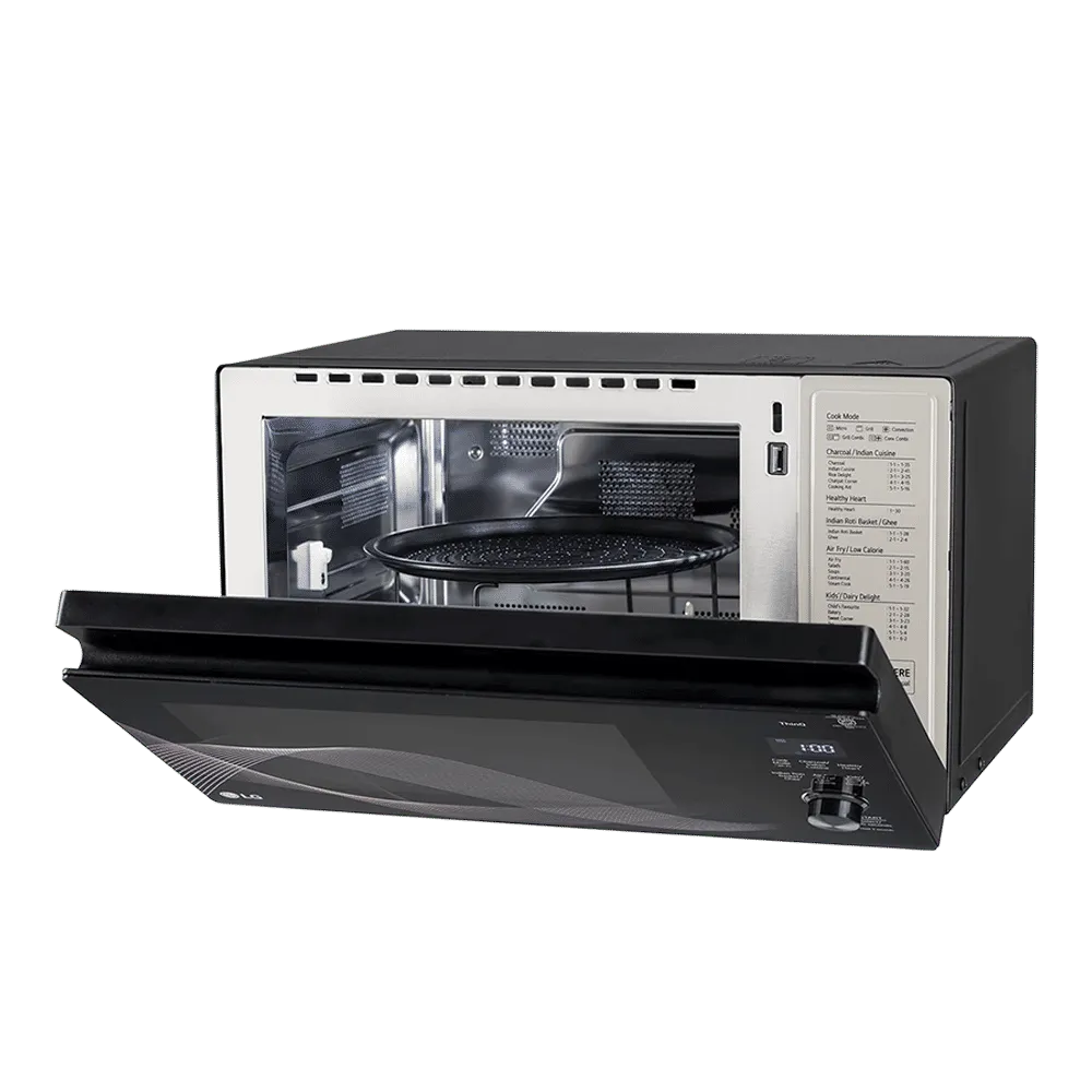 The LG 32L Charcoal Convection Microwave Oven (MJEN326UHWF) is a versatile kitchen companion designed for families who love variety in their meals. With convection technology and a large 32-litre capacity, it handles everything from daily reheating to baking, grilling, roasting, and frying with ease. The sleek black finish and touch control panel with LED display give it a modern, premium look that fits beautifully into any kitchen.