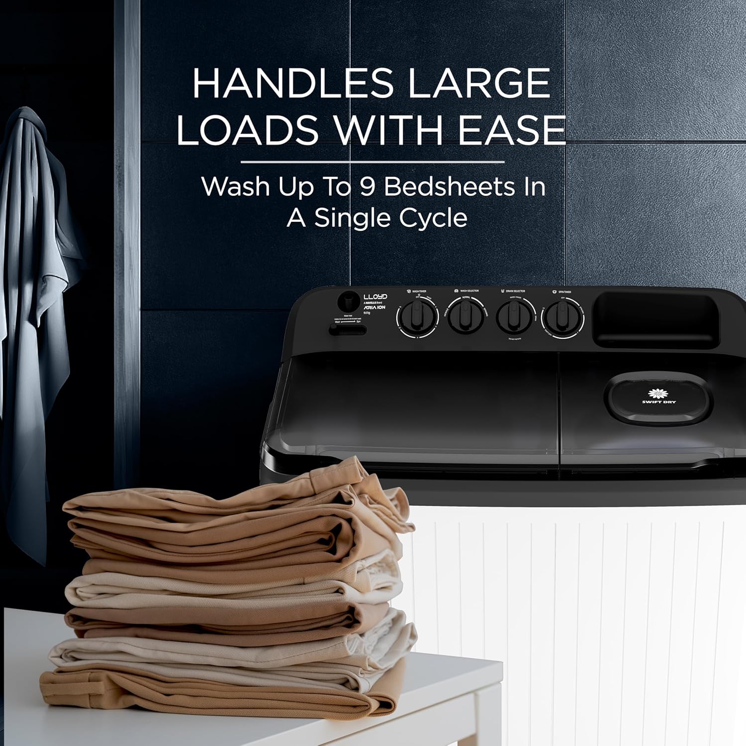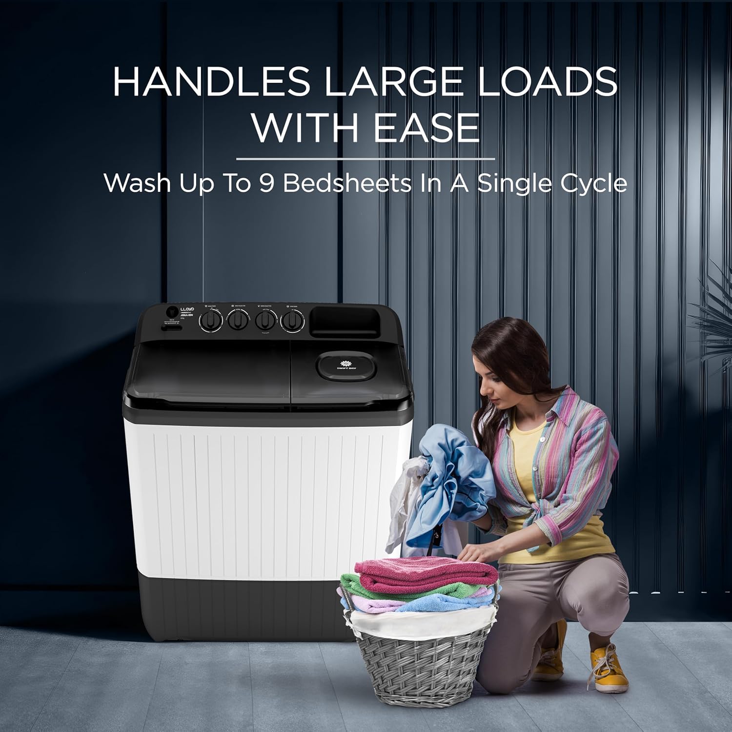 The 9 Kg Semi-Automatic Top Load Washing Machine is designed to handle larger laundry loads with ease, making it ideal for medium to large families. Built with a durable ABS body and a lightweight plastic drum, it offers reliable performance while remaining easy to move and maintain. Its top-load design and simple knob controls provide convenient and straightforward operation, perfect for everyday washing needs.