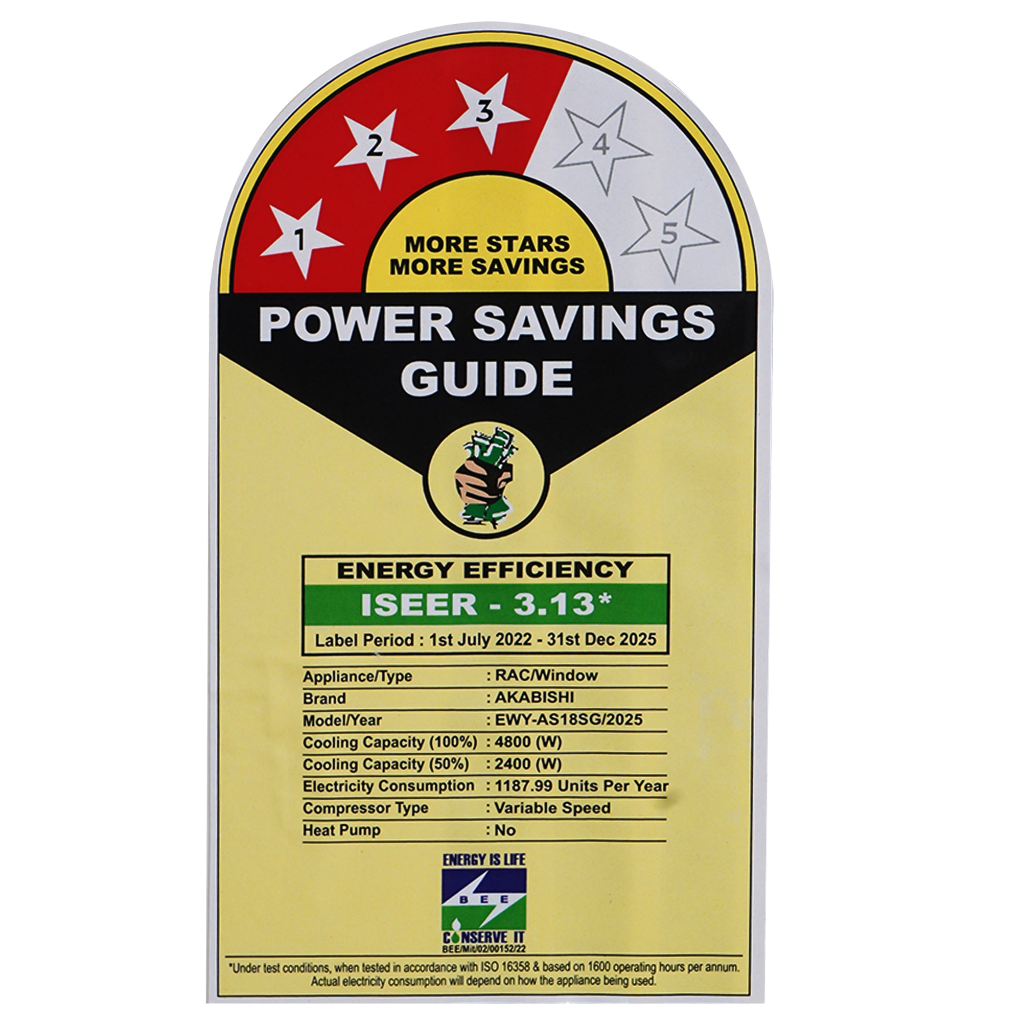 | Energy Rating | 3 Star (BEE 2025) |