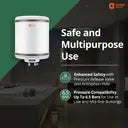 Built with a durable metal body, this water heater is engineered for long-lasting use and dependable operation. The integrated pressure release valve enhances safety by regulating internal pressure, making it suitable for regular home installation. Its clean white classic design blends seamlessly with most bathroom interiors, offering a balance of performance, safety, and simplicity.