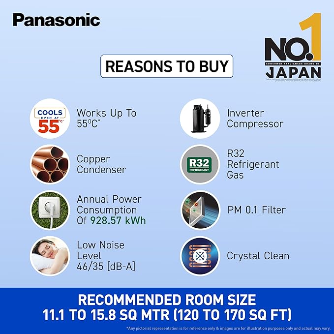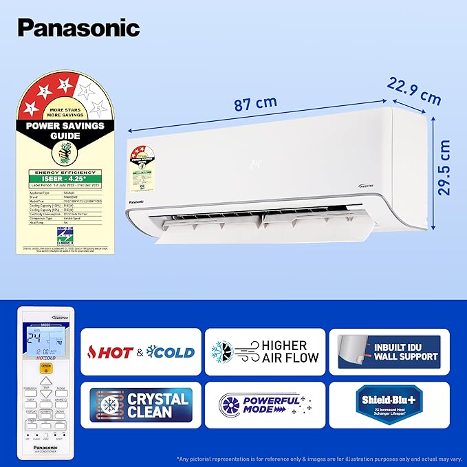 Built for Indian weather conditions, this Panasonic AC operates efficiently in extreme temperatures from -7°C to 55°C, making it an excellent choice for all-season use. It features a Copper Condenser, Higher Airflow, 2-Way Swing, and PM 0.1 Filter for faster cooling and cleaner indoor air. The added ShieldBlu+ protection coating enhances durability and helps prevent leakage, ensuring long-lasting performance with low maintenance.