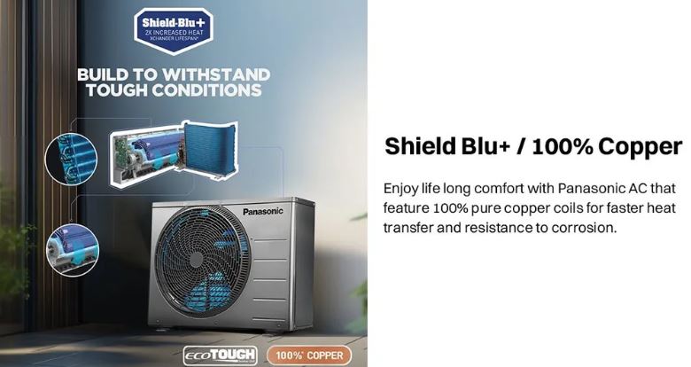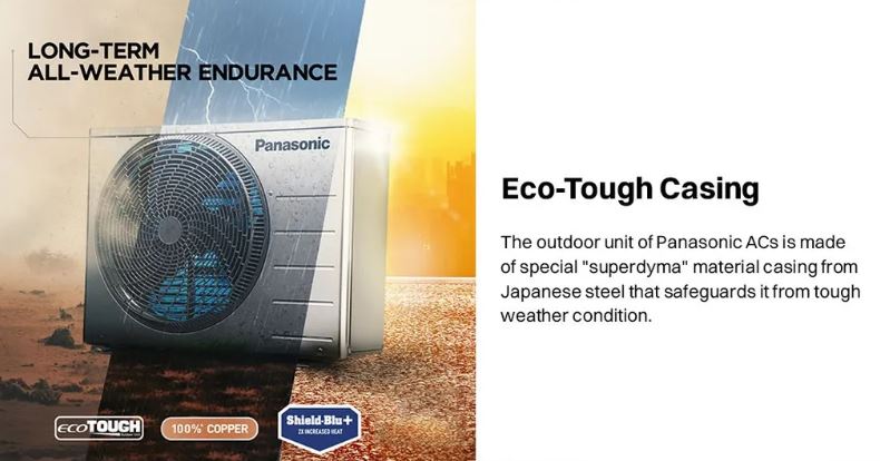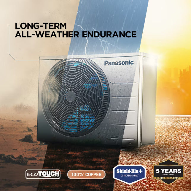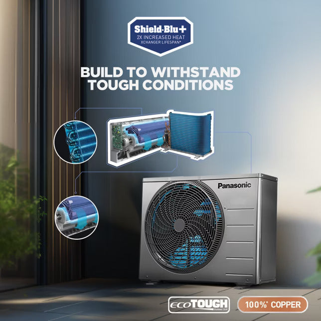 Designed for long-lasting performance, this AC features Jetstream with Aerowings that throws air up to 45 feet and ensures fast, uniform cooling with 4-Way Air Swing. The Eco-Tough Superdyma casing protects the outdoor unit from harsh weather, while Shield Blu+ coated 100% copper coils enhance durability and heat transfer efficiency. With added comfort features like Customized Sleep Profile and Crystal Clean self-cleaning technology, this AC ensures healthy air and uninterrupted comfort all year round.