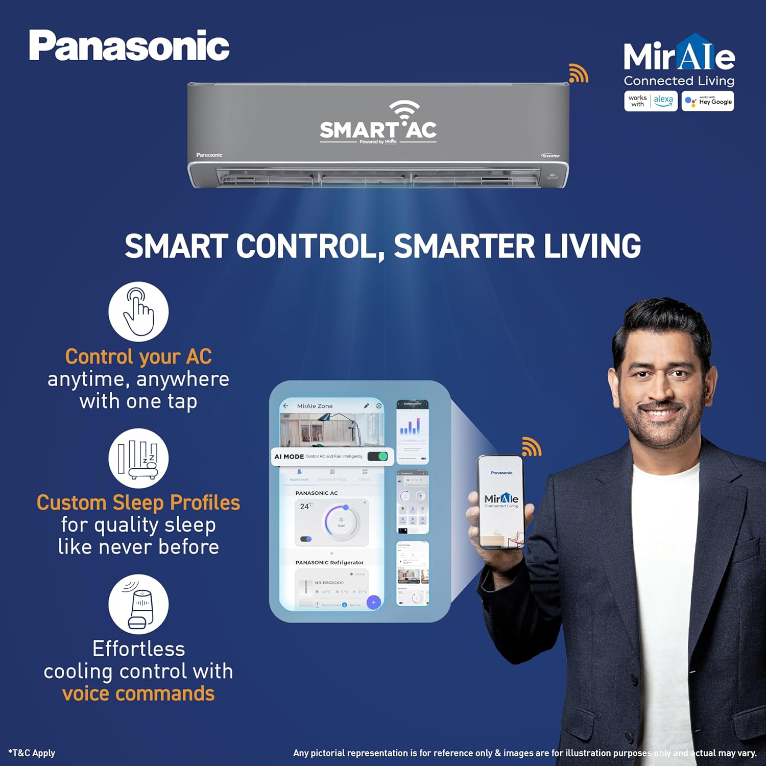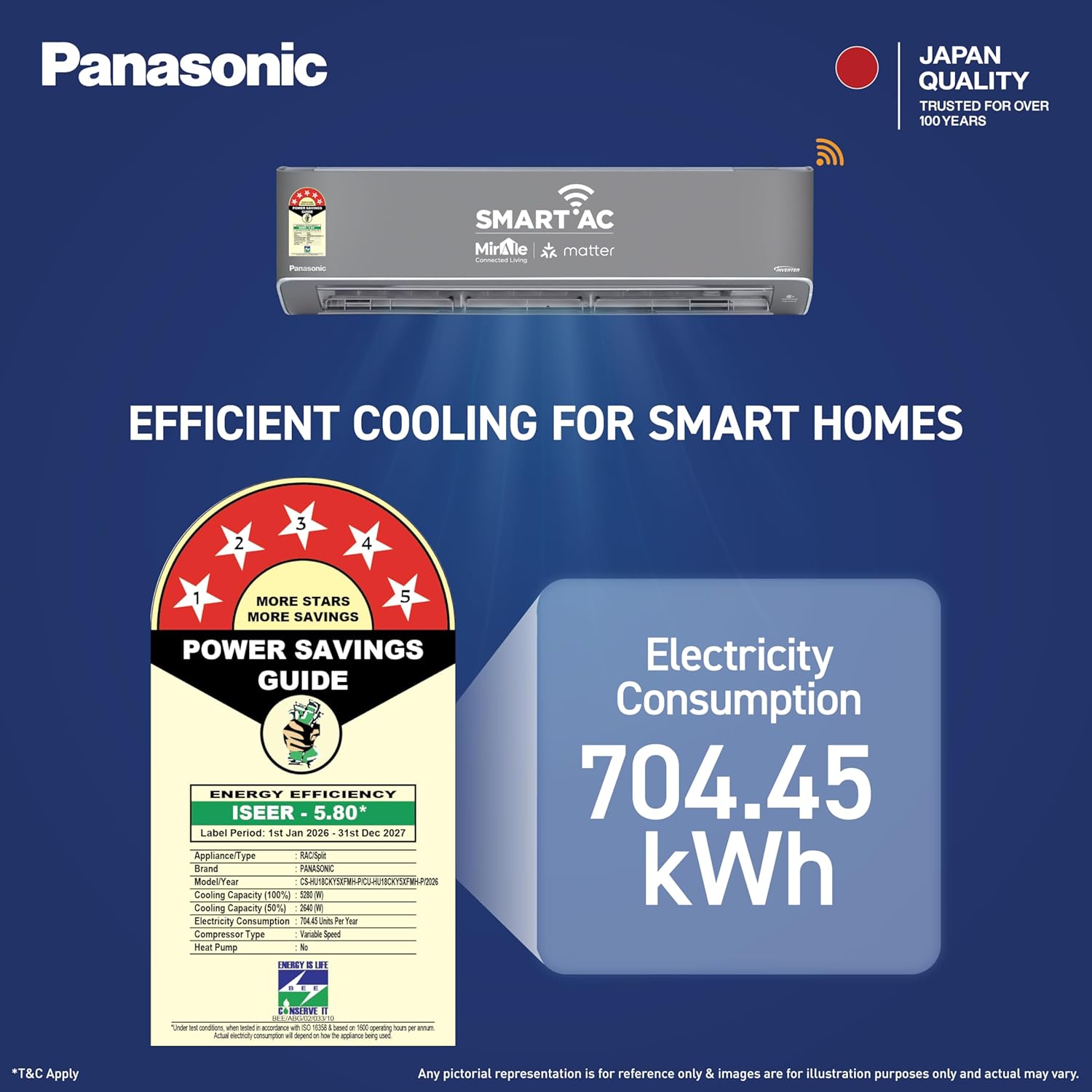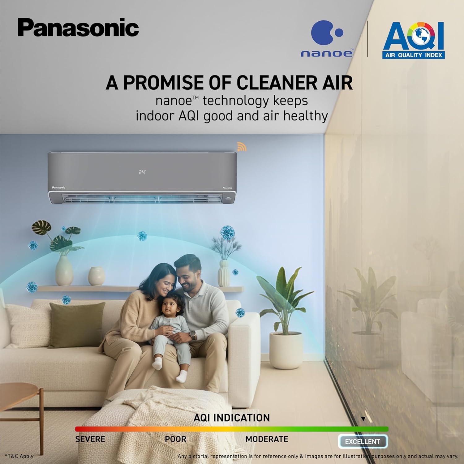 Built to withstand extreme Indian summers, this AC operates efficiently even at temperatures up to 55°C while maintaining consistent cooling. It features nanoe™ air purification technology that helps eliminate harmful particles and improves indoor air quality. With smart Wi-Fi connectivity, voice control compatibility, and Matter-enabled integration, users can control the AC remotely and seamlessly connect it with smart home ecosystems for a convenient and futuristic experience.