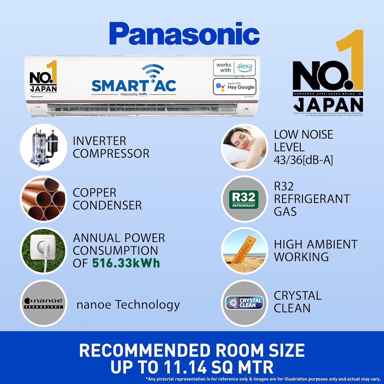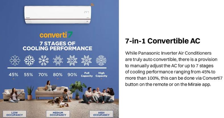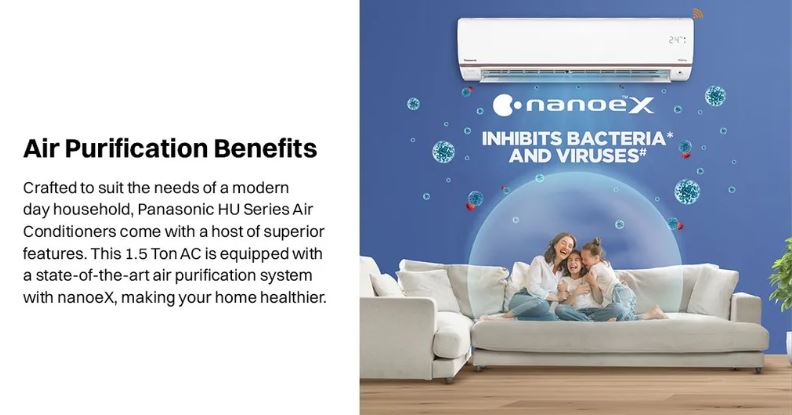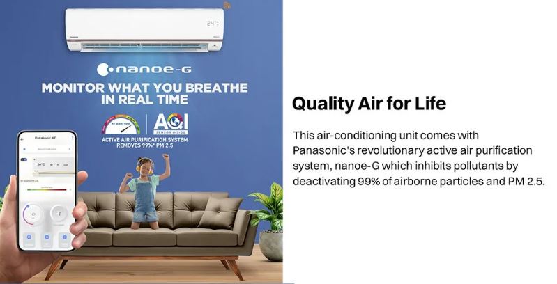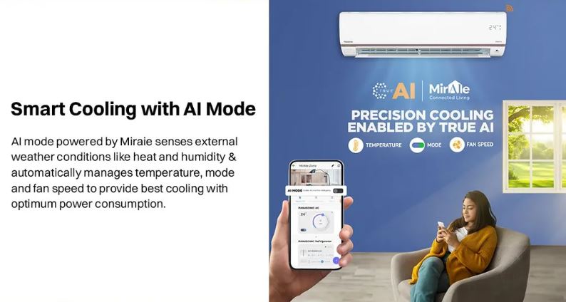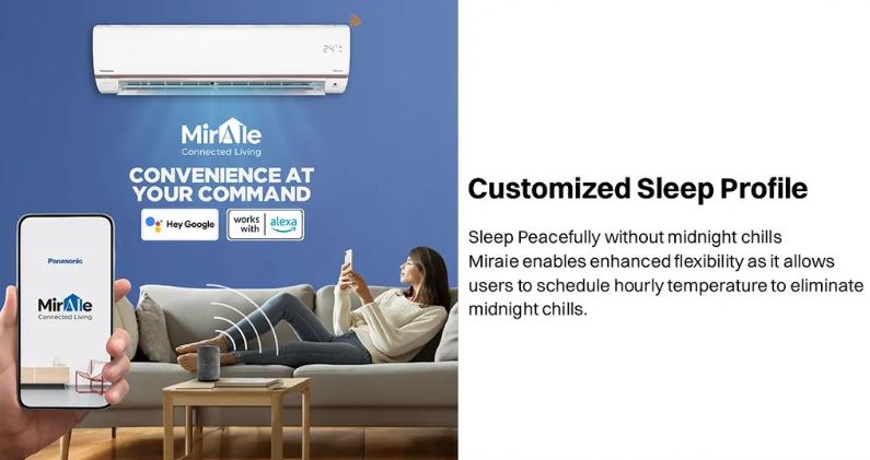 Built for modern smart homes, this air conditioner comes with built-in Wi-Fi and MirAie App support, allowing you to control settings remotely from your smartphone or through voice commands using Alexa and Google Assistant. The advanced nanoe™ X technology actively inhibits bacteria, viruses, odors, and allergens, delivering cleaner and healthier air. Combined with 4-way air swing, hidden display, and low-noise operation, this AC ensures consistent cooling, better air quality, and everyday convenience.