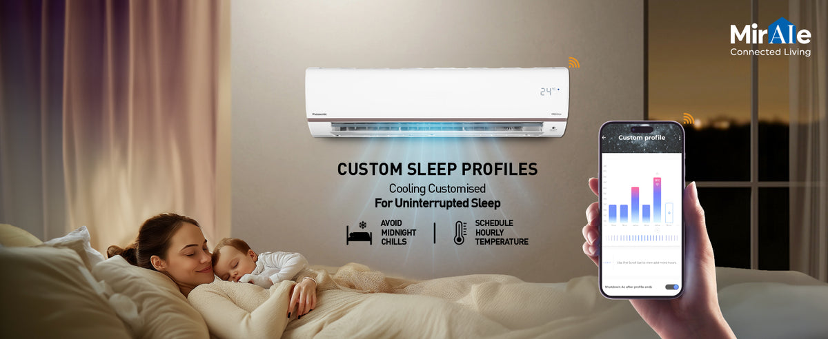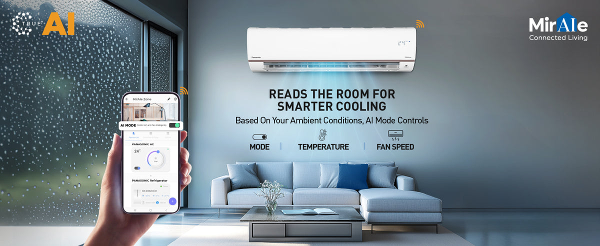 Designed for smarter living, this AC supports Wi-Fi connectivity with MirAie App, allowing you to control temperature, modes, and schedules from your smartphone or via voice commands using Alexa and Google Assistant. The integrated nanoe™ X technology actively inhibits bacteria, viruses, odors, and allergens, delivering cleaner and healthier indoor air. Combined with 4-way air swing, hidden display, and low-noise operation, this AC provides uniform cooling, enhanced air quality, and everyday convenience.