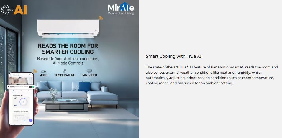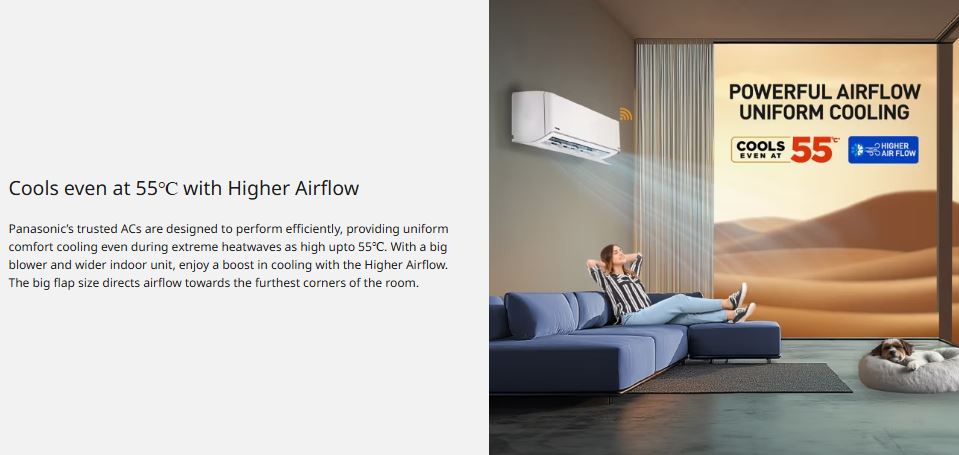 The Panasonic 2 Ton Inverter Split AC with 7-in-1 Convertible Cooling and True AI Technology is designed to deliver powerful, intelligent, and energy-efficient cooling for modern homes. With the ability to adjust cooling capacity across multiple levels, this AC automatically analyses room temperature and usage patterns to provide the perfect balance of comfort and electricity savings. Its high airflow of 720 CFM ensures fast and uniform cooling across large rooms, even during extreme summer conditions.