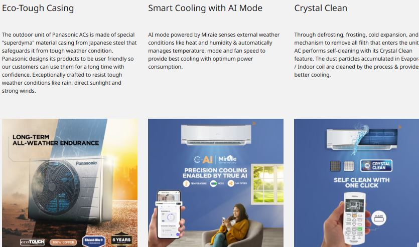 Built for modern smart living, this AC can be controlled through the Miraie Mobile App and via voice commands using Alexa and Google Assistant, allowing you to manage temperature, schedules, and modes effortlessly. The PM 0.1 air purification filter captures ultra-fine dust and pollutants, ensuring cleaner and healthier indoor air. With a 100% copper condenser, eco-friendly R32 refrigerant, and durable construction, this AC offers reliable performance even in extreme temperatures from 16°C to 52°C, making it a perfect choice for Indian summers.