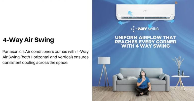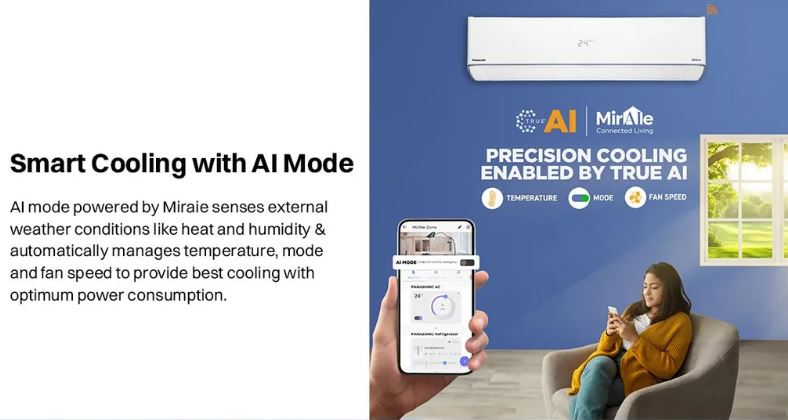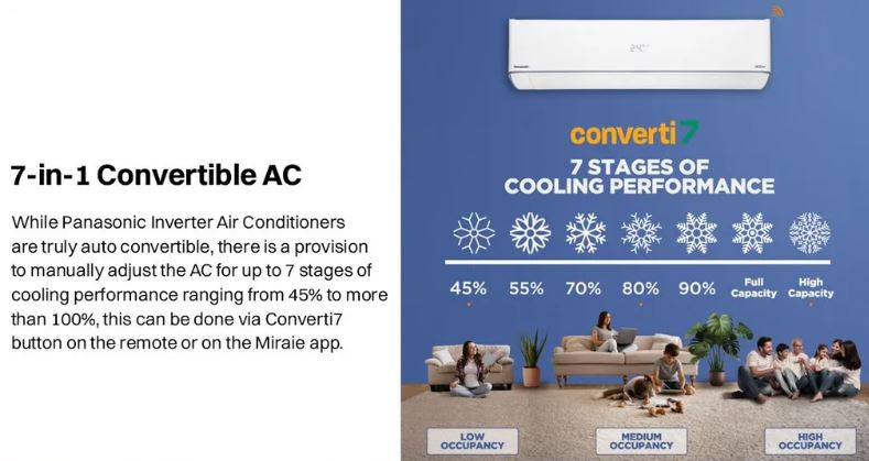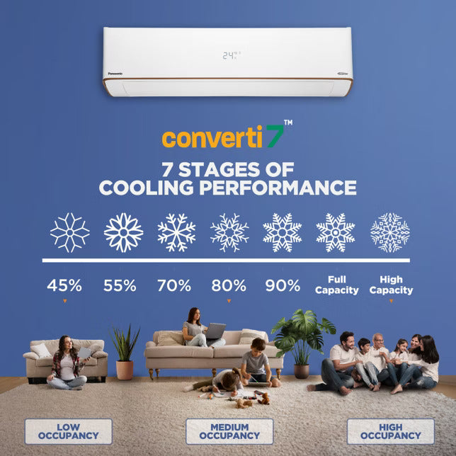 The Panasonic EU Series Inverter Split Air Conditioner is engineered to deliver powerful, stable, and energy-efficient cooling for modern homes. Equipped with Smart 7-in-1 Convertible Cooling and advanced inverter technology, it intelligently adjusts compressor speed according to your cooling needs, ensuring consistent comfort with lower electricity consumption. Whether it’s peak summer heat or mild weather, this AC adapts effortlessly to provide optimal performance.