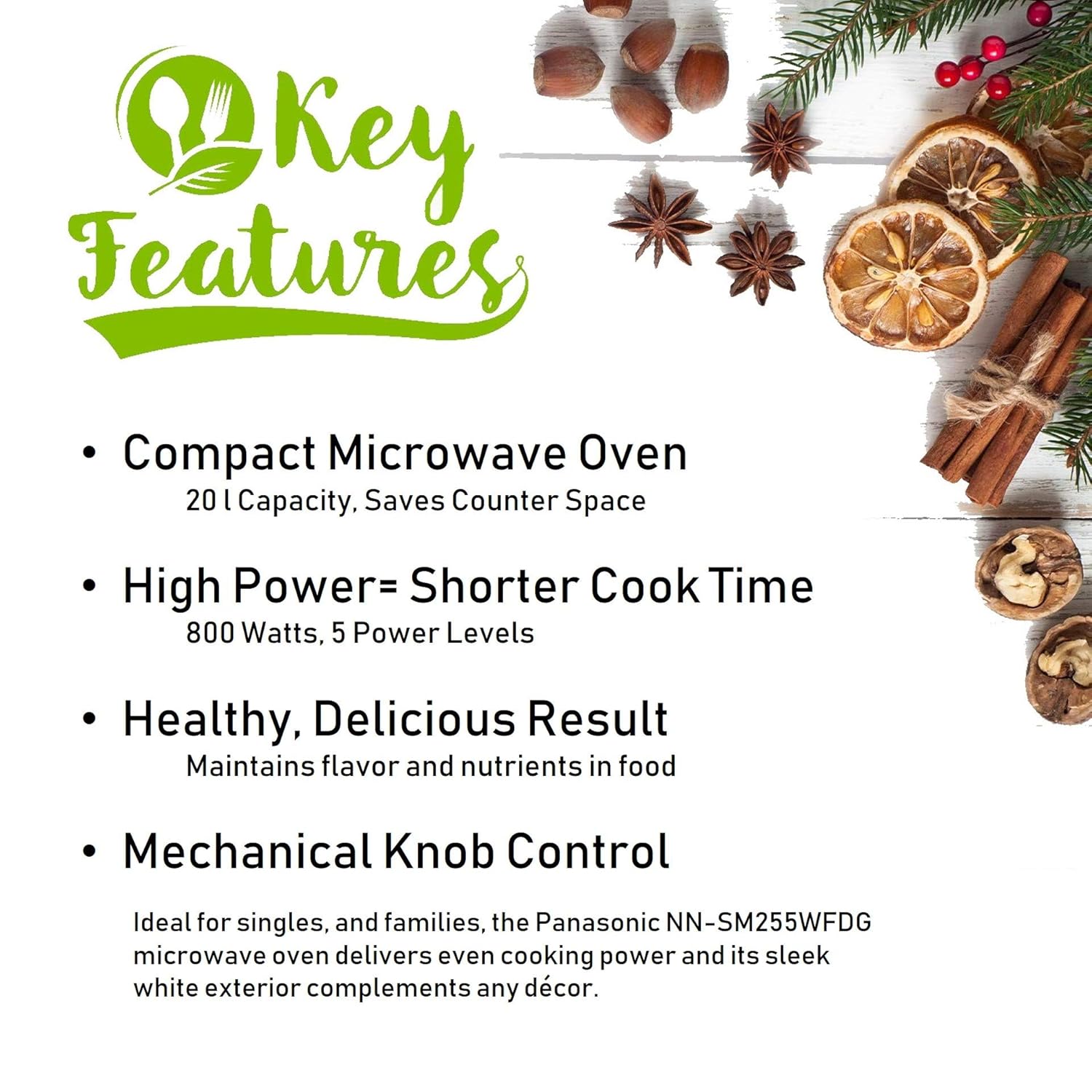 The Panasonic NN-SM255WFDG 20-Litre Solo Microwave Oven is a simple, reliable, and efficient kitchen companion designed for everyday cooking, reheating, and defrosting. With 800W high power output, it delivers fast and even heating, making meal preparation quick and convenient for bachelors and small families. Its elegant white finish blends seamlessly with modern kitchen interiors.