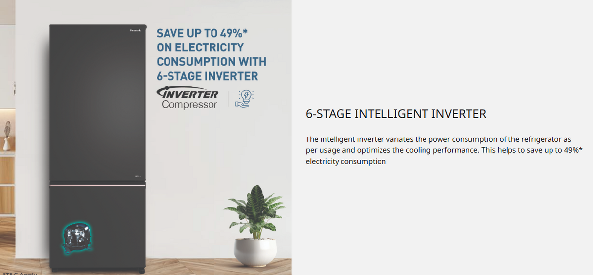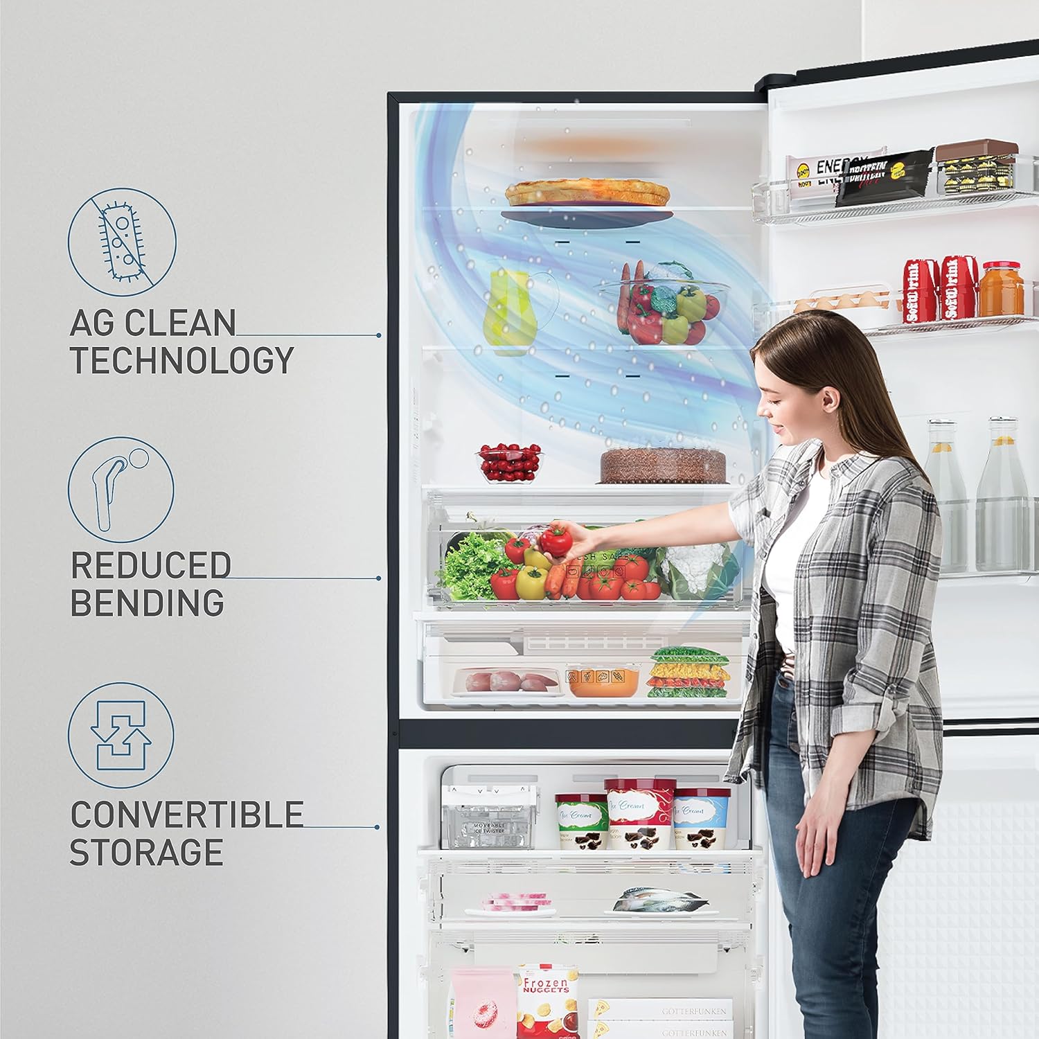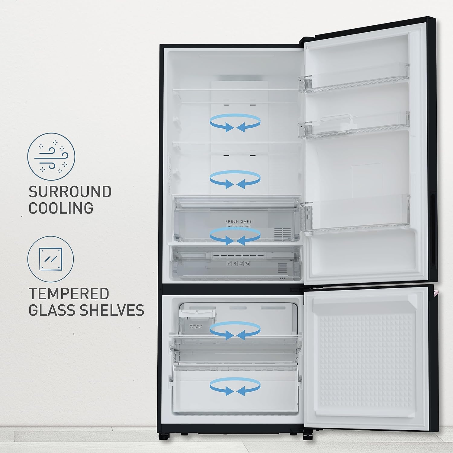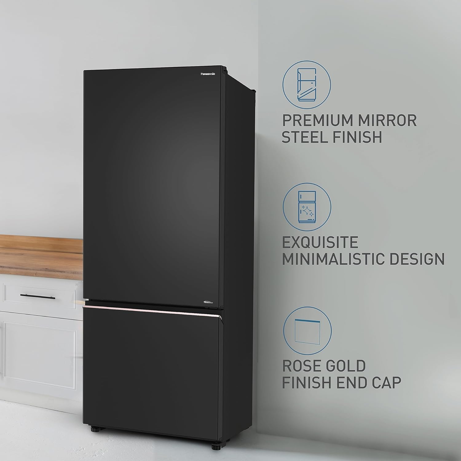 The Panasonic NR-BK415BQKN Bottom Mount Refrigerator is designed for modern homes that need flexible storage, powerful cooling, and premium aesthetics. With a net capacity of 357 litres and a stylish Diamond Black glossy finish, this refrigerator offers spacious and well-organized compartments along with a convenient bottom-freezer design that reduces bending while accessing daily-use items.