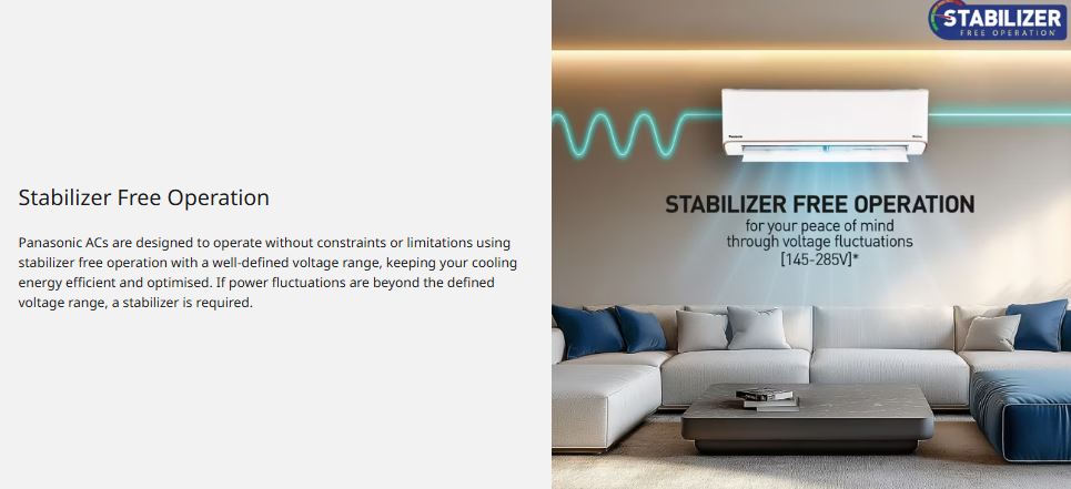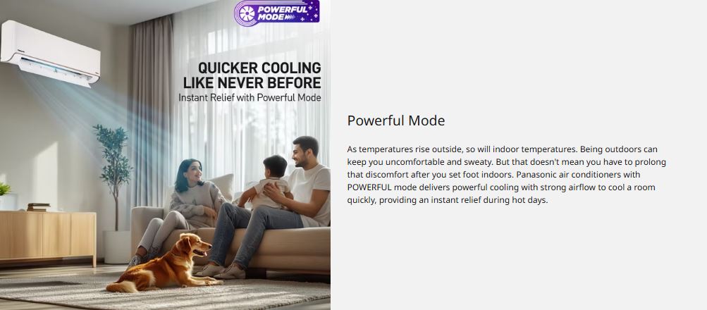 Powered by advanced inverter technology, this AC intelligently adjusts compressor speed to maintain the desired temperature while significantly reducing power consumption. Designed for everyday comfort, it operates with low noise levels, making it ideal for bedrooms, living rooms, or workspaces. The use of an eco-friendly refrigerant further enhances efficiency while supporting a greener environment, backed by Panasonic’s long-term warranty assurance.