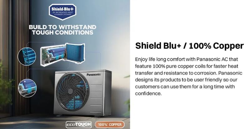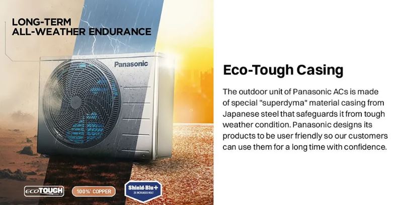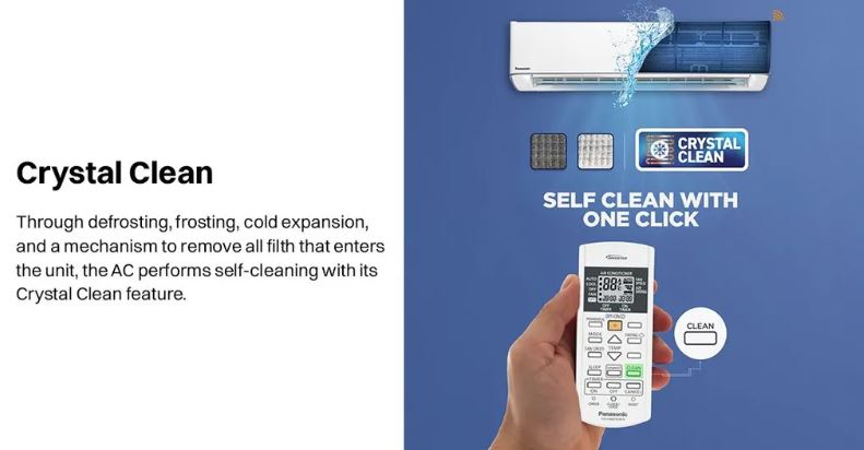 Equipped with 4-Way Air Swing and High Airflow, this air conditioner ensures uniform cooling in every corner of the room. The Crystal Clean technology keeps the internal unit clean for better hygiene and long-term performance, while the Eco-Tough outdoor casing protects the unit from harsh weather conditions. Featuring PM0.1 and Anti-Dust filters, this AC not only cools efficiently but also helps maintain cleaner indoor air for a healthier environment.
