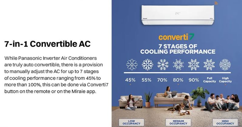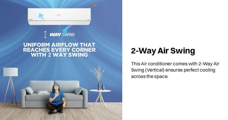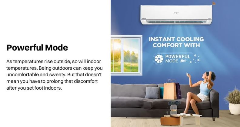 The Panasonic EU Series 2 Ton 3 Star Inverter Split Air Conditioner is designed for powerful and reliable cooling in large rooms and living spaces. With a strong 24,000 BTU cooling capacity and advanced inverter technology, this AC delivers consistent performance while optimizing power consumption. Its 7-in-1 Convertible mode allows you to adjust cooling capacity as per your needs, making it ideal for both peak summer afternoons and energy-saving night usage.