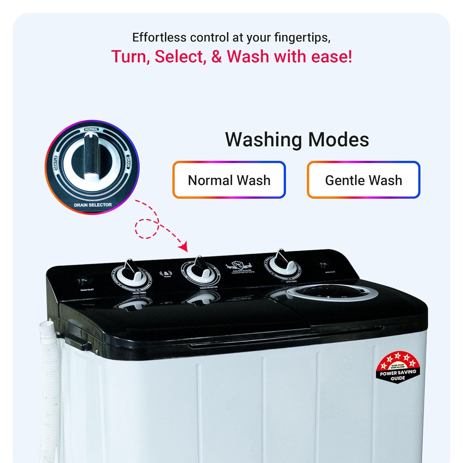 The Power Guard PG65WMBKOP 6.5 Kg Semi-Automatic Washing Machine is designed to deliver excellent wash quality while being energy and water efficient. With a 5-Star energy rating, it ensures lower power consumption without compromising performance. Its 6.5 kg capacity makes it ideal for small to medium-sized families looking for reliable and affordable laundry solutions.