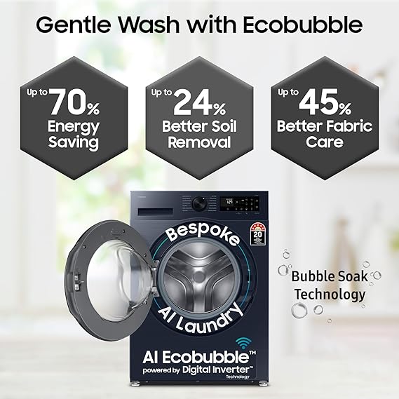 | Additional Features | AI Eco Bubble Technology, Hygiene Steam, Inverter, Spin Speed : 1400 rpm, WiFi Embedded |