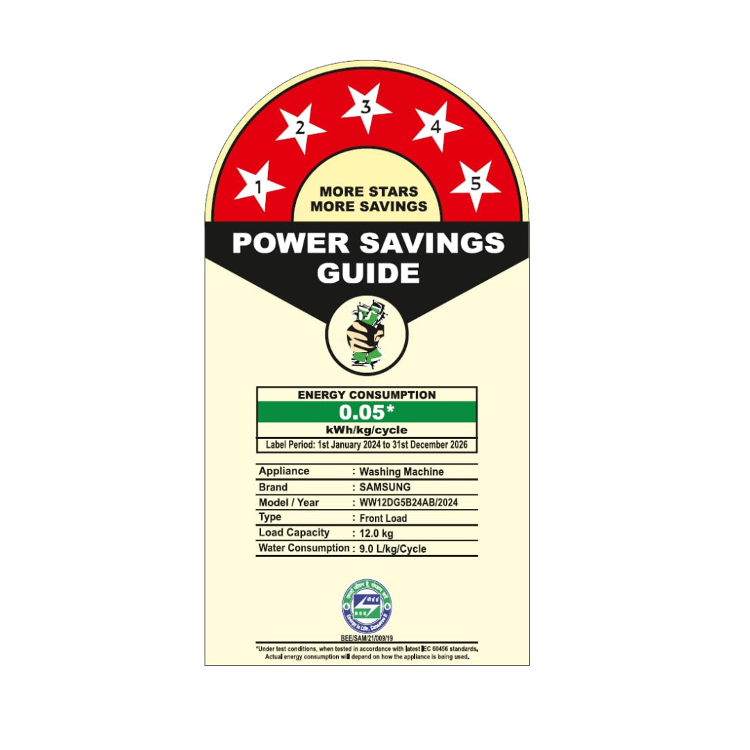 The 12 Kg Fully Automatic Front Load Washing Machine is designed for large families, delivering powerful cleaning with advanced smart features. With its premium glossy black finish and durable stainless steel drum, it combines modern aesthetics with long-lasting performance. Equipped with AI Eco Bubble technology, it ensures deep cleaning even at lower temperatures by converting detergent into fine bubbles, making it effective on tough stains while being gentle on fabrics.