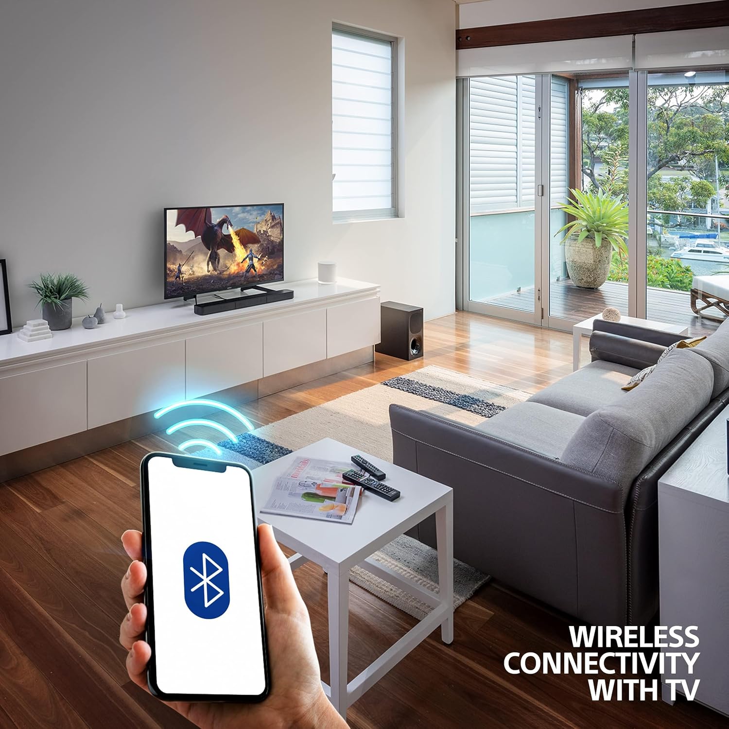 With a powerful 400W total output, the HT-S20R fills your room with room-shaking bass, crisp highs, and clear dialogue. Enjoy easy wireless music streaming via Bluetooth, or plug in directly through USB, HDMI, or Optical connectivity for flexible setup options. Whether you’re watching movies, gaming, or listening to music, this Sony home theatre system delivers big sound in a compact and stylish design.