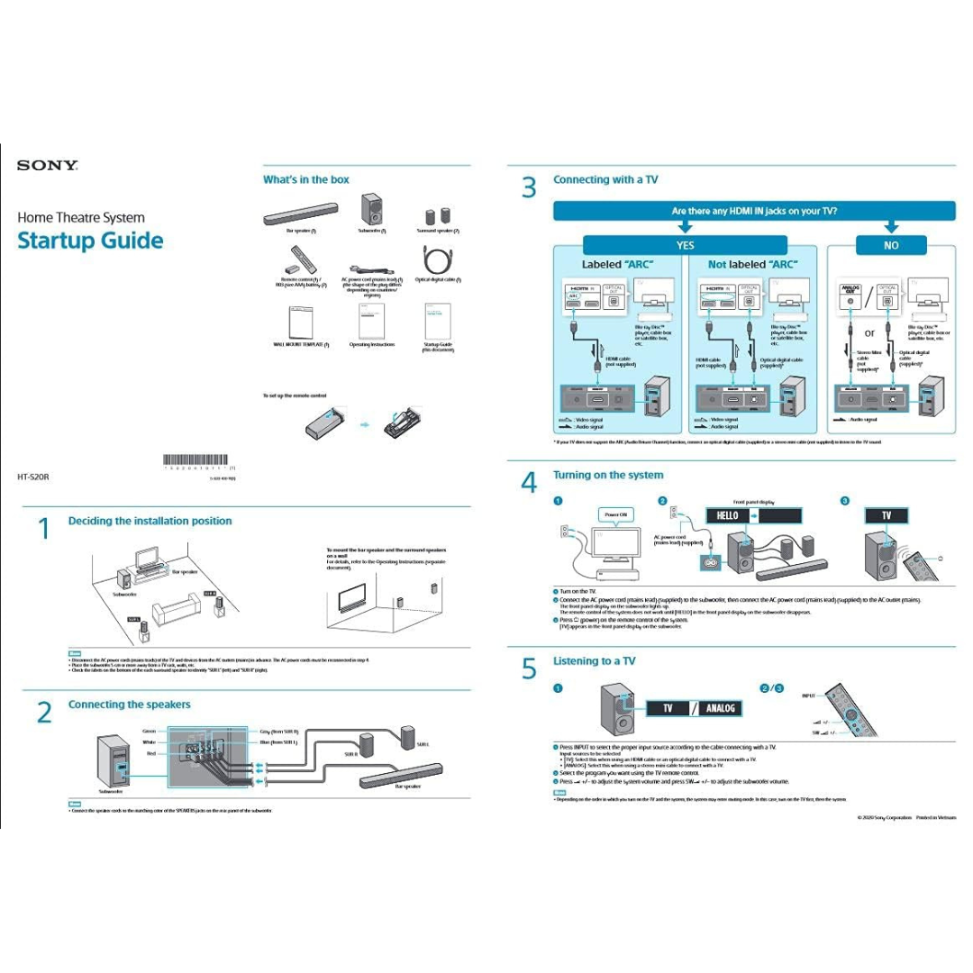 The Sony HT-S20R Real 5.1 Channel Dolby Digital Soundbar Home Theatre System is designed to deliver true surround sound for an immersive cinematic experience at home. Featuring a 3-channel soundbar, compact rear speakers, and a powerful external subwoofer, this system creates authentic 5.1-channel surround audio that places you right in the center of the action. With support for Dolby Digital, every movie, show, and game sounds richer, clearer, and more dynamic.