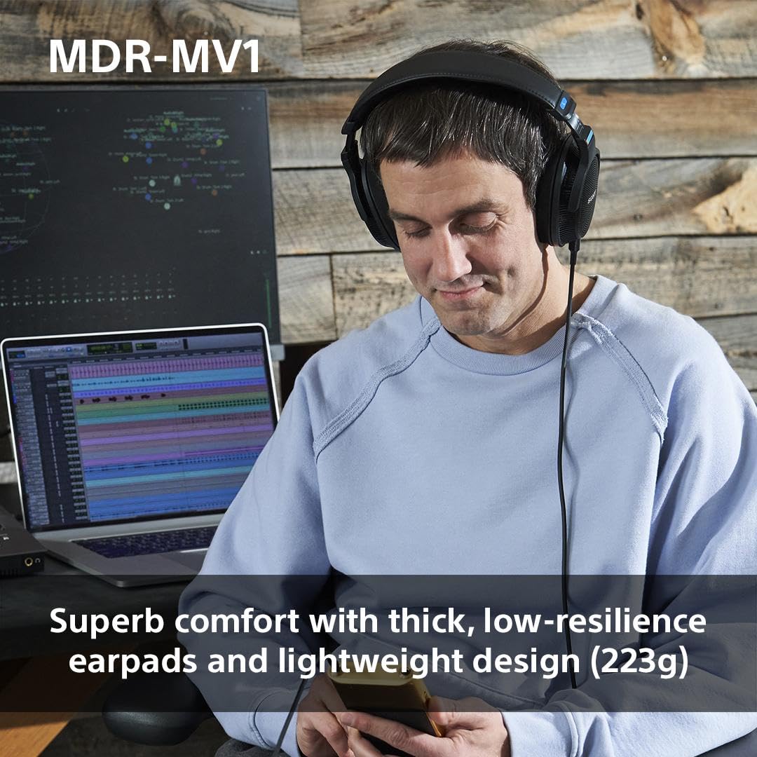 Designed for long studio sessions, the MDR-MV1 offers a lightweight, comfortable over-ear fit that minimizes listening fatigue. The open-ear construction allows natural airflow, helping maintain comfort while delivering realistic sound imaging. Whether you are working on music production, film sound design, or immersive audio formats, these Sony studio headphones provide reliable performance and professional-grade accuracy.