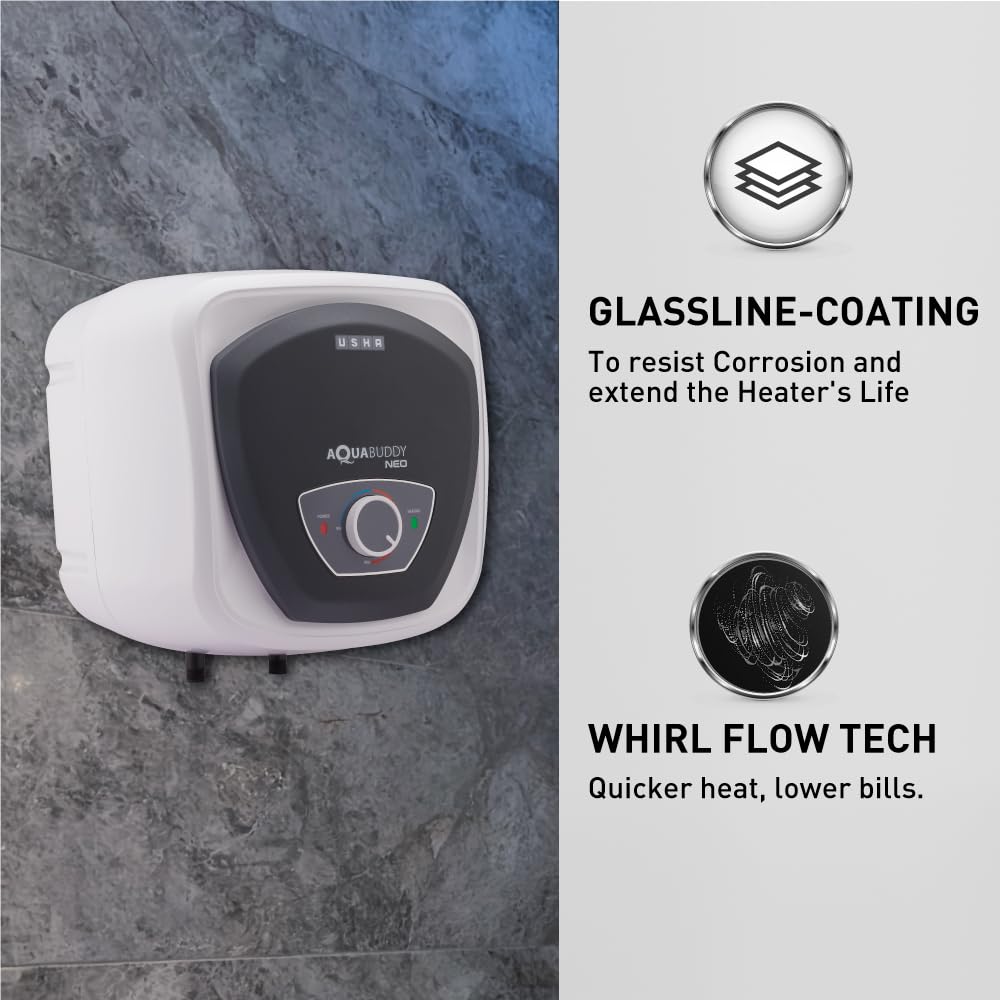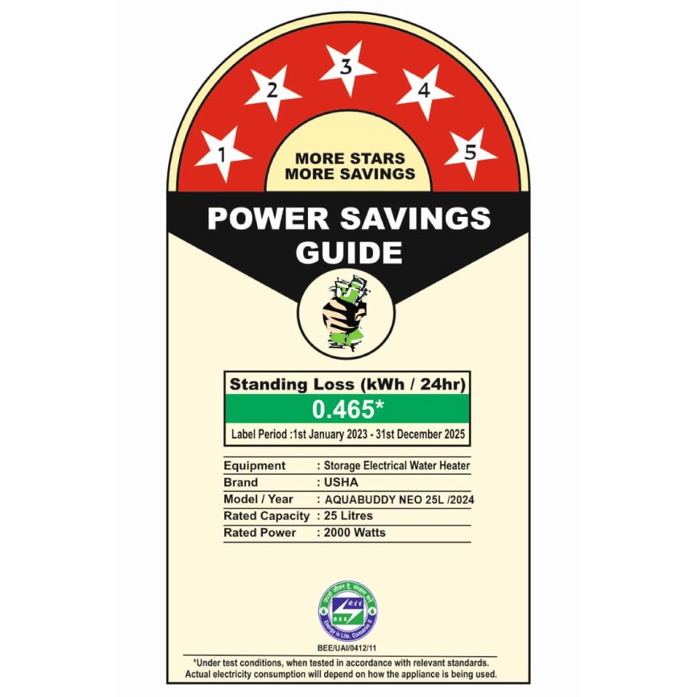 USHA AquaBuddy Neo Geyser 25 Litre 5 Star BEE Rating | Copper Heating Element | Storage Water Heater with Anti-Rust Protection | Warranty: 8 Yr Tank, 2 Yr Product