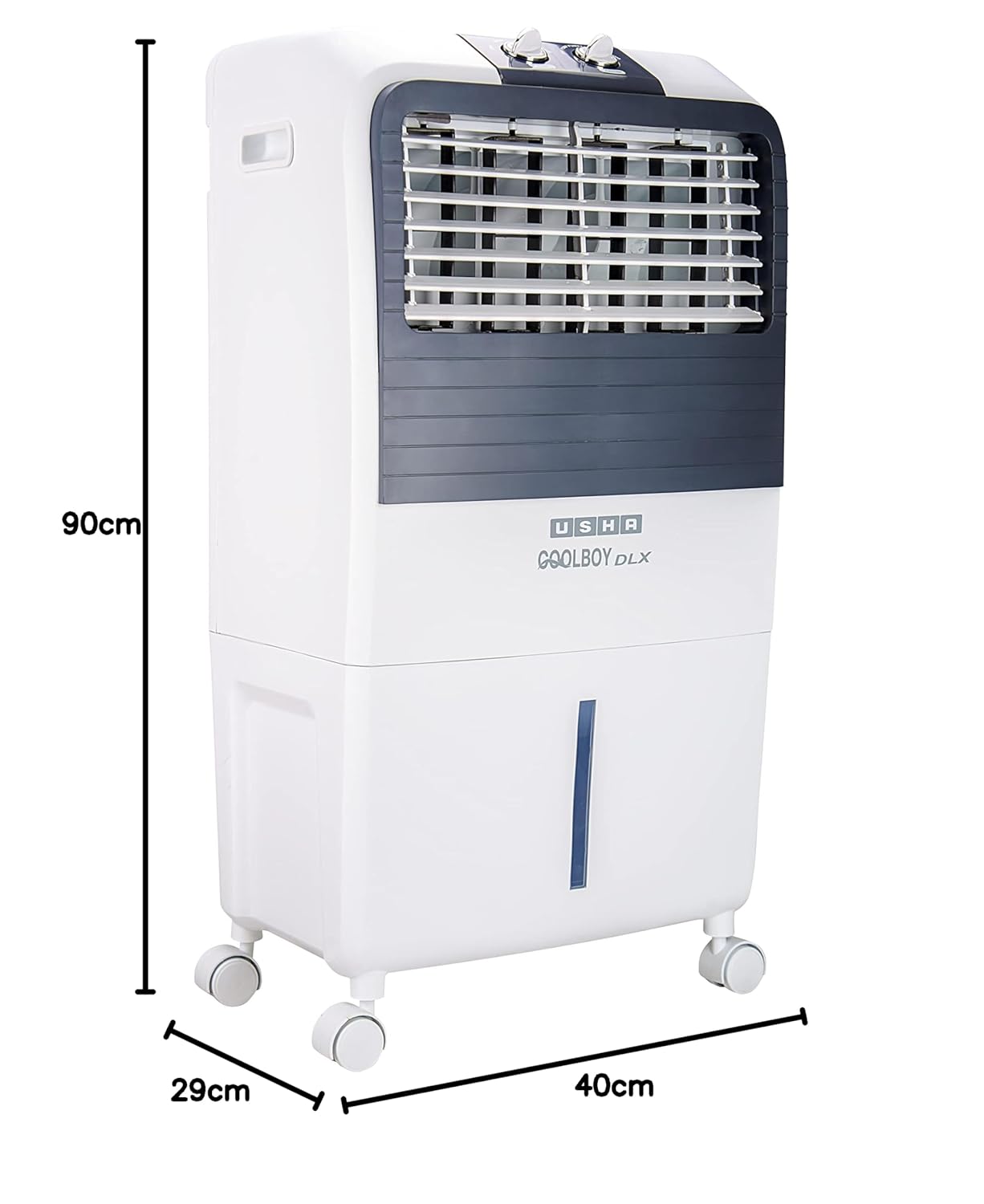 The Usha International Coolboy DLX 35 Personal Air Cooler (Model: DLX 35CBDP1) is a powerful yet compact cooling solution designed for residential use and medium-sized rooms. With a 35-litre water tank and energy-efficient 105W motor, it provides effective cooling while keeping electricity consumption low. Its freestanding design and portable build make it easy to move and position as needed.