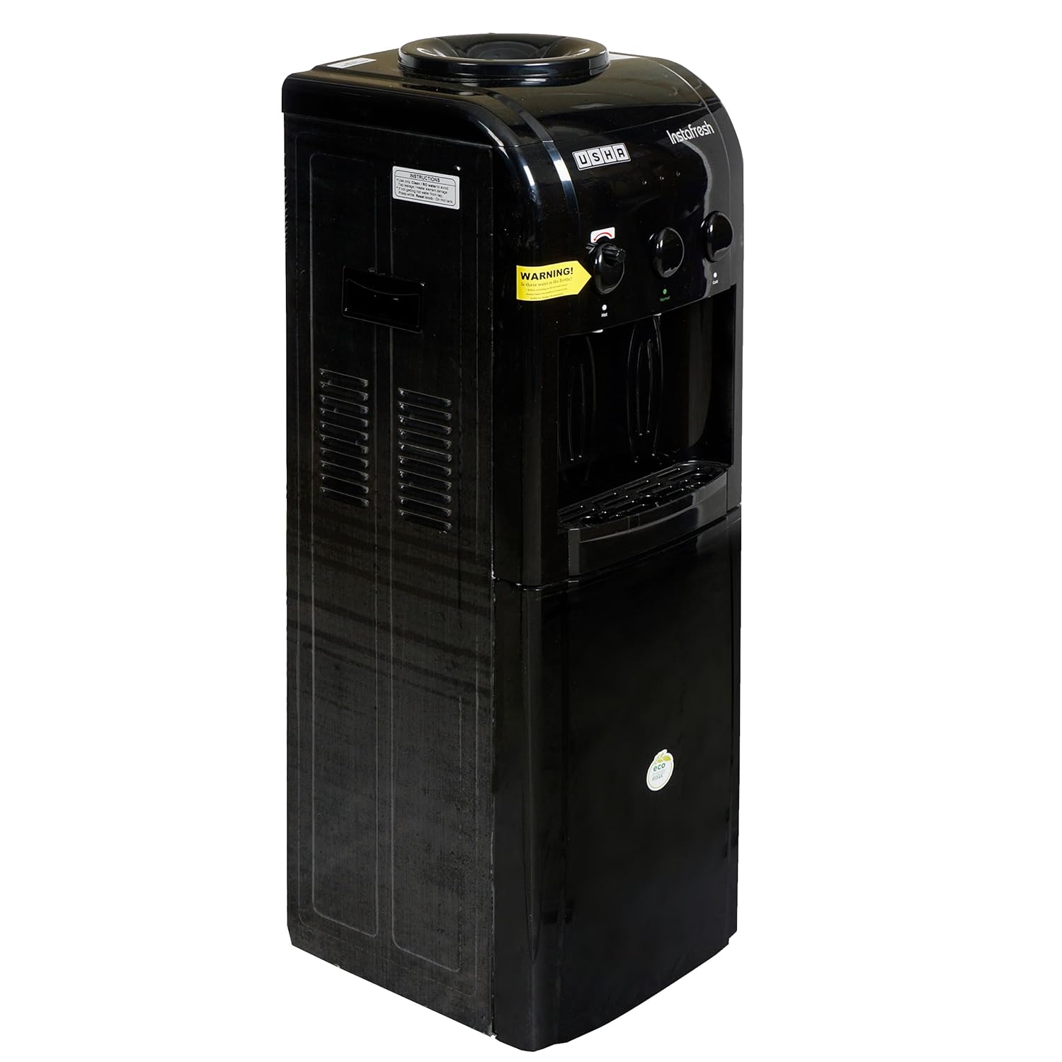 The Usha Jet Black 3 Tap Bottom Loading Water Dispenser is a premium and space-saving solution designed for convenient hydration in homes, offices, clinics, and cafeterias. Its bottom-loading design makes bottle replacement easy and hassle-free, while the sleek black stainless-steel enclosure adds a modern and durable finish that complements contemporary interiors.