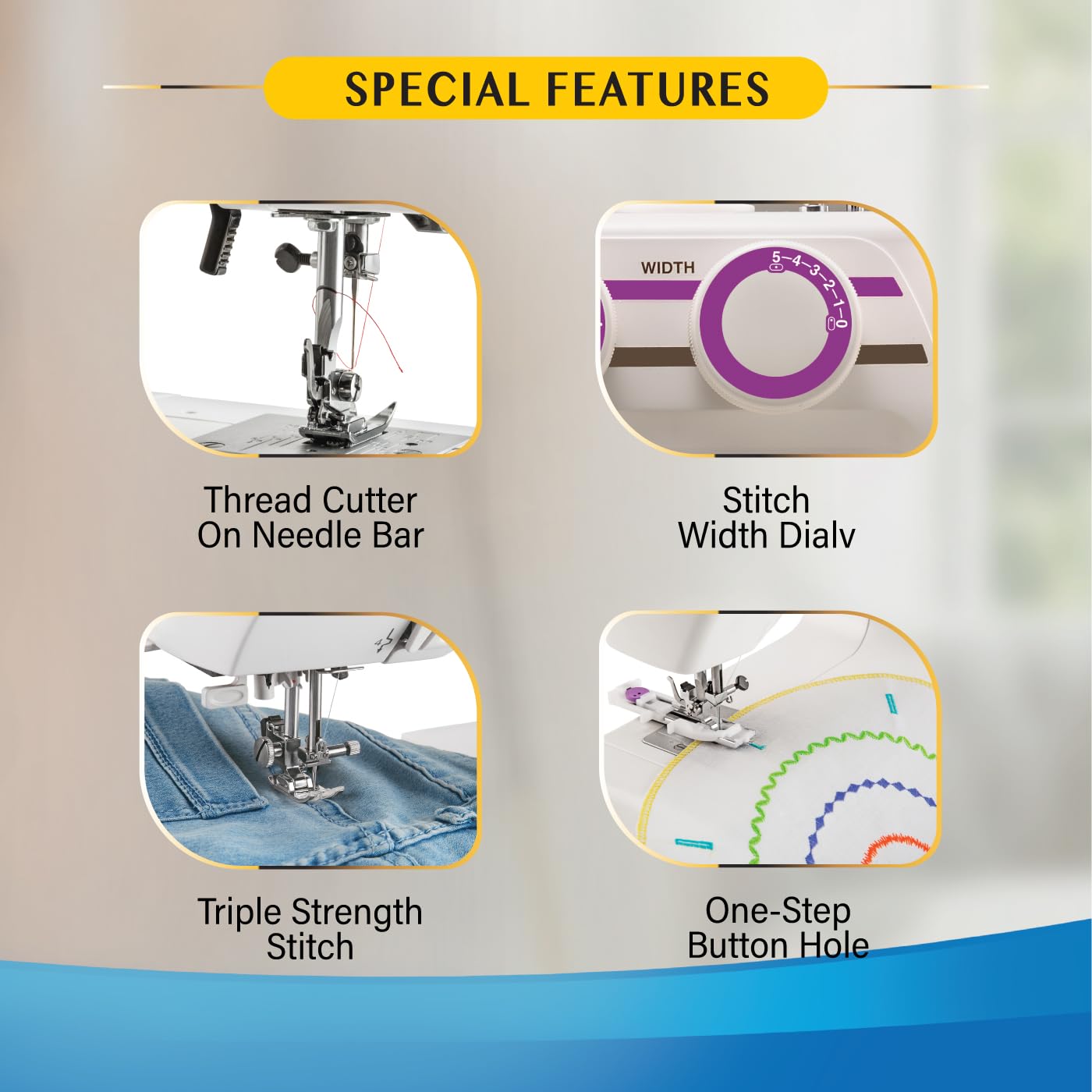 The Usha Wonderstitch Plus Sewing Machine is a reliable and efficient electric sewing machine designed for smooth, skip-free stitching and long-term durability. Built with a heavy-duty internal frame, it keeps all mechanisms perfectly aligned to ensure consistent performance, making it suitable for regular home stitching, repairs, and creative sewing projects. Its compact design and elegant white finish blend well with modern home setups.