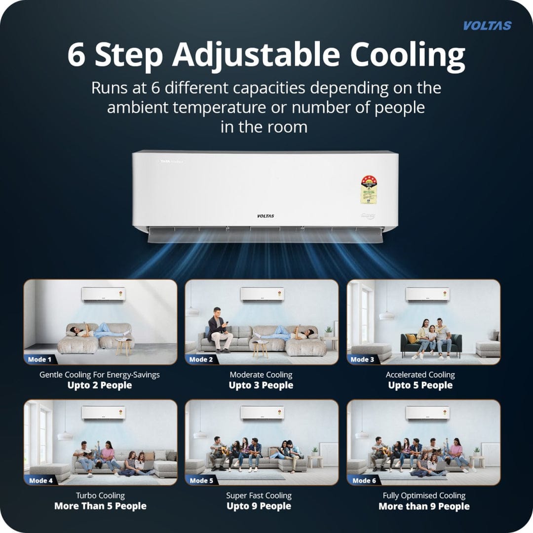 The Voltas 185V Venus Luxe Maha 1.5 Ton Inverter Split AC is designed for heavy-duty cooling with premium efficiency, making it ideal for Indian summers. With a 5 Star BEE rating and 6-step adjustable cooling modes, this AC intelligently adapts its performance based on room conditions, ensuring powerful cooling while keeping electricity consumption under control. Its elegant white finish with a hidden display adds a refined touch to modern interiors.