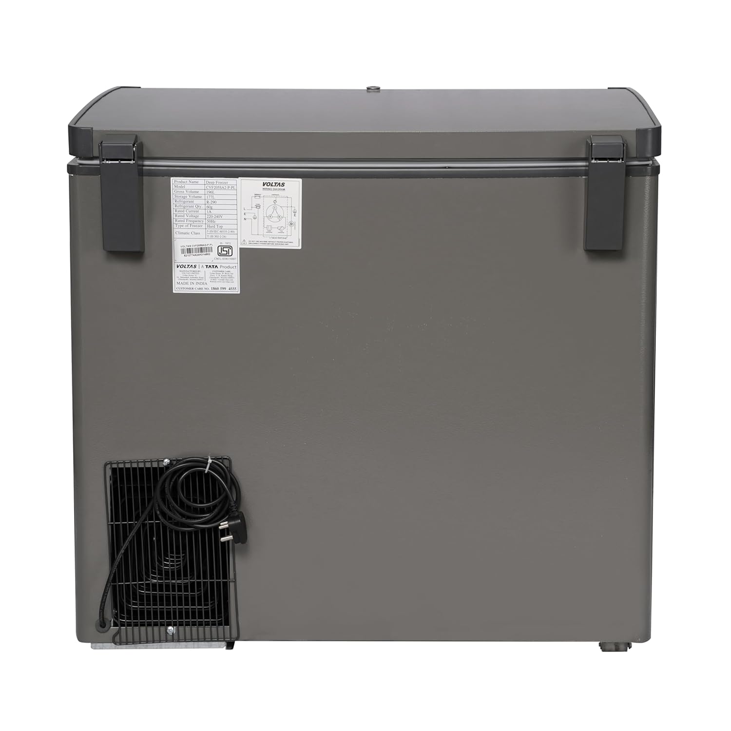 VOLTAS 205 L Single Door White and Grey Hard Top Deep Freezer, CVF205 SA2-P-PL