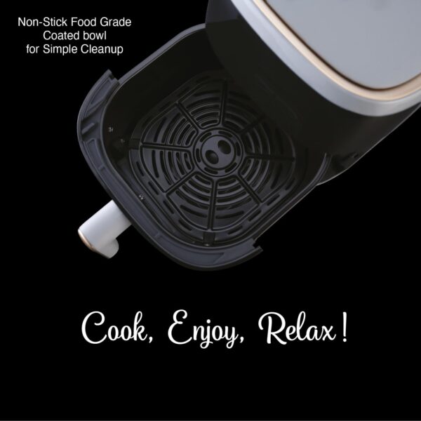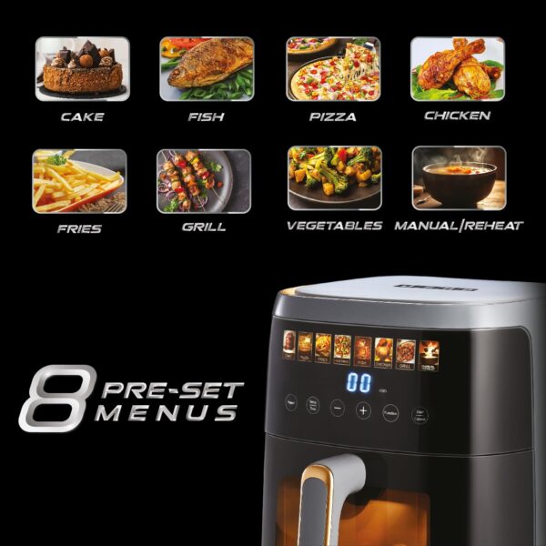 The iCHEF Smart Air Fryer 5 L is not just an appliance; it’s a lifestyle upgrade. Rediscover the joy of cooking with its ability to create healthier versions of your favorite dishes. From crispy fries to succulent roasts, this air fryer does it all with ease and efficiency. The intelligent timer system allows precise control over your cooking time, ensuring your dishes are cooked to perfection. This versatile air fryer offers 10 functions, including air frying, baking, roasting, grilling, thawing, slow cooking, barbecuing, braising, toasting, and air drying. It’s the all-in-one appliance for your kitchen.